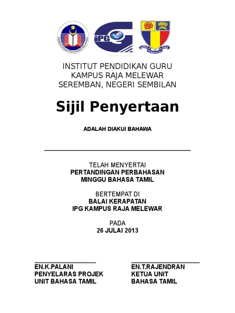 Sijil penyertaan · dengan ini diakui bahawa · pertandingan mendeklamasikan syair · yang dianjurkan oleh panitia bahasa malaysia dengan kerjasama · you might also .